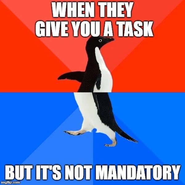 I am not implying that I do not fulfill my non-compulsory duties but I can not deny that the thought of avoiding them never occurred to me.